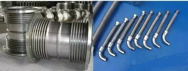 使用金屬波紋管制作而成的一類膨脹節(jié)。它可以沿軸線方位進行伸縮,也同時允許少量彎曲。下圖為經(jīng)常看到的軸向式波紋管膨脹節(jié),用在管道上作為軸向長度補償。為了正好能達到允許的補償量,在波紋管兩頭制作的有保護拉桿或保護環(huán),在與其聯(lián)接的兩頭管道上制作導向支架。除此之外,還有轉(zhuǎn)角式以及橫向式膨脹節(jié),能夠用來補償管道的拐角變形和橫向走形。這類膨脹節(jié)的特點是節(jié)省空間,還有節(jié)約材料,便于標準化和批量生產(chǎn),不好的一點事是壽命比較短。波紋管膨脹節(jié)經(jīng)常被用于溫度和壓力不很高且長度較短的管道上。隨著波紋管生產(chǎn)技能水平的加強,這類膨脹節(jié)的應用范圍越來越廣。由構成其工作主體的波紋管以及端管、支架、法蘭、導管等附件組合而成。主要運用于各種管道中,它可以補償管道的熱位移,機械變形以及吸收各種機械振動,從而起到降低管道變形應力以及提高管道使用壽命的效果。波紋補償器連接方式分為法蘭連接和焊接兩種。直埋管道補償器通常情況下采用焊接方式